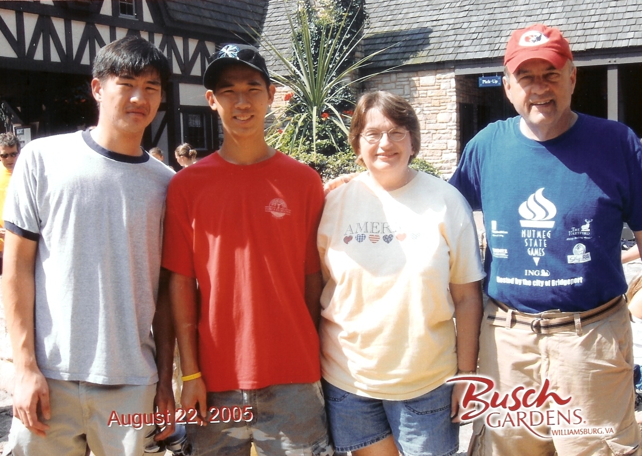 Dateline:Williamsburg, Virginia...It's the beginning of the south and hospitality abounds all around. Al and Nancy began their journey to the southern state on August 20 at 9pm, after Andrew and Eric joined them following their workday at Ridgefield's Super Stop & Shop. Al drove the first three hours through challenging traffic in New York City and New Jersey, followed by Nancy's two hours of driving and then Al's driving again and finally Nancy's driving into Williamsburg at about 6:45am Sunday morning. It was the first and last time for an all night drive for the Bruhns. August 21 found the Bruhns recuperating from their sleepless night on the road with a great breakfast at Cracker Barrel after checking into their Fairfield at Williamsburg condo. Hot and humid was the weather of the day that persisted into Monday, August 22 where the Bruhns spent the day at Busch Gardens and had their family photo taken as posted on this homepage. Tuesday was a rainy day and time to relax and catch-up on lost sleep time from the previous weekend. Then, the party began with the best weather for another day at Busch Gardens August 23. Swimming at Yorktown beach was the great weather day on Thursday, August 24. And, back to Busch Gardens on Friday, August 26 for another great weather day of fun activities. While at Busch Gardens, Andrew and Eric experienced all the challenging rides while Al and Nancy enjoyed the sky ride, train ride and boat ride. The Bruhns always met at The German pavilion for lunch. The Bruhns left their Kingsgate Condo Saturday, August 27 and headed to Reading, Pennsylvania to visit the factory outlet stores before venturing back to their Ridgefield, Connecticut home on Sunday, August 28. Home Sweet Home!