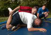 exhibition matches. Rinaldi, Bruhn's martial arts trainer and physical trainer, earned first place gold medal during the daytime event. Bruhn is coached by 2006 New York Section One third place high school wrestler Vincent Argese of Carmel High School. Bruhn also had a Pankration match with Vincent Argese during a nighttime martial arts tournament at Patterson Recreation Center June 10, and earned a sportsmanship medal. Bruhn, a cardiac rehab patient, is subject of an exclusive national medical cardio/wrestling book project. Click here for more information on June 10, 2006 tournaments.
