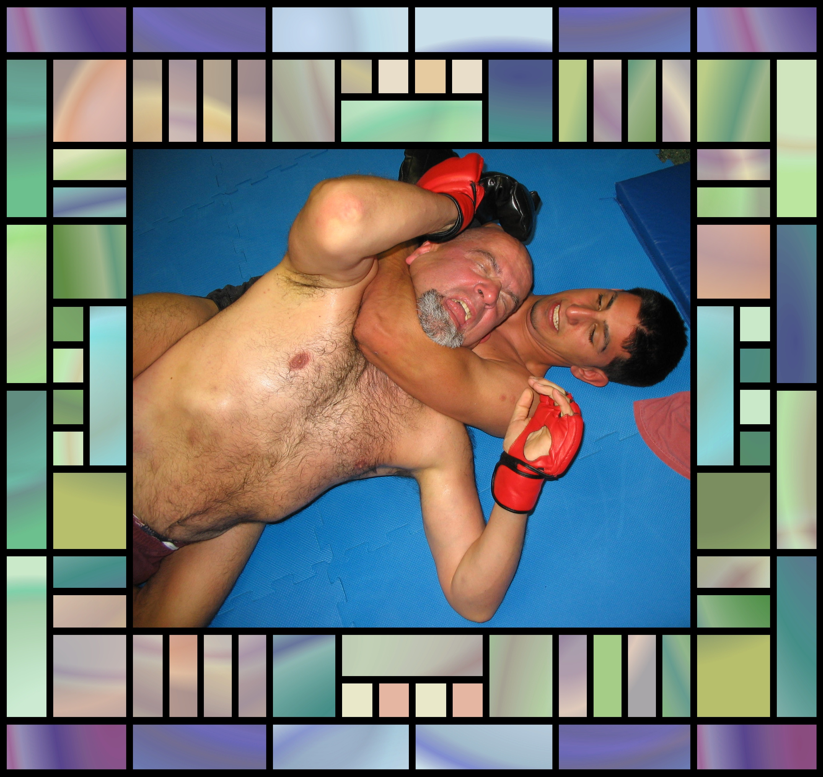 in second row second picture from left, when the two meet in a Pankration Match June 10